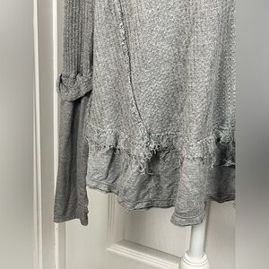 Free People We the Free Gray Waffle Knit Longsleeve Distressed Thermal Oversized