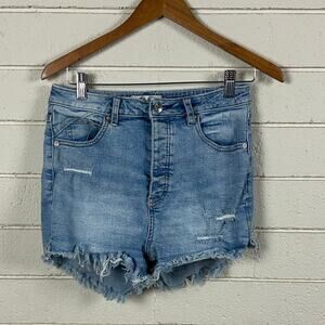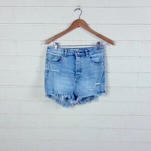 Free People We the Free Jean Shorts size 28. Approx. measurements 28” waist, 10 “ rise, 2” inseam. Raw edge hems.