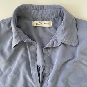 Free People Love Until Tomorrow pullover shirt top in light sky blue. It's all about the billowy, oversized look in this effortless pullover shirt from Free People. Pop the collar and go. This ballooned sleeve top has a v-neckline, simple collar and button sleeves. Pair this loose fitting blouse tucked in with your favorite skinnies for a pull together look. Made by We The Free a division of Free People.