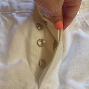 Free People Makai high waist white jean denim shorts, distressed. Excellent condition no stains. Little to no pilling. Size 27 please see measurements pictures to be sure of fit.