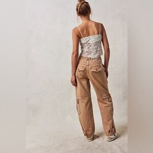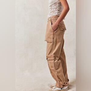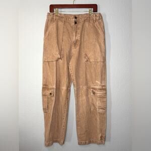 Free People We the Free Marx Slouchy Cargo Tab Bottom Loose Fit Jeans Tan 30