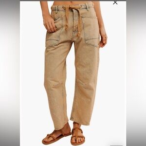 Free People We the Free Moxie Barrel Paint Splatter Jeans 27 Color: Cowboy NWT