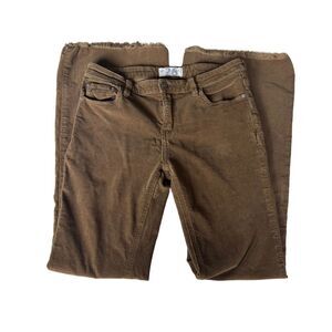 Free People We the Free Olive Green Corduroy Flare Leg Raw Hem Pants Size 26