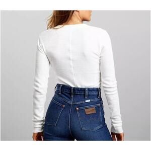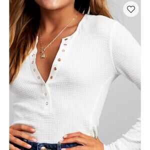 Free People We the Free One Of The Girls Henley Ivory Waffle Knit Long Sleeve L