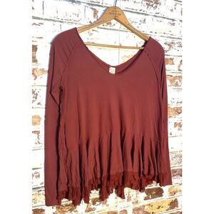 Free People We the Free Oversized Flowing Layered Hem Long Sleeve Thermal Blouse