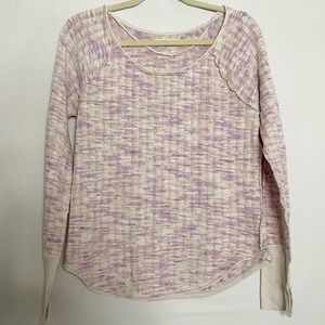 Free People We the Free Pink Combo Spaced Out Long Sleeve Cozy Knit Top Sz L