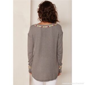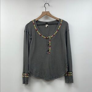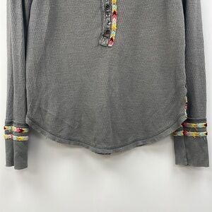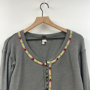 Free People We the Free Rainbow Thermal Waffle Knit Henley Shirt Boho Grey XS