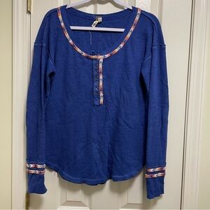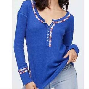 Free People We the Free Royal Blue Rainbow Embroidered Thermal Top M
