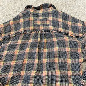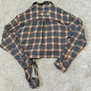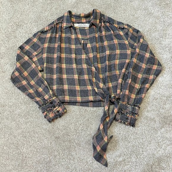 Free People We the Free Running Wild Plaid Wrap Top Size XS Frayed Collared