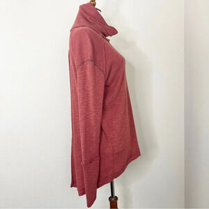 A softly marled turtleneck in a rich fall-ready shade is styled with a long reglan sleeves with a breeze high/low hem in a flay away back that makes this top perfect for layering.