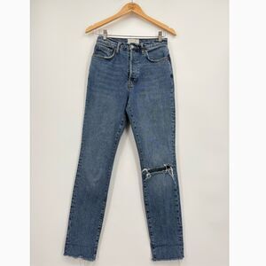 Free People We the Free Stella High Rise Ripped Jeans, Size 28, Button Fly Boho
