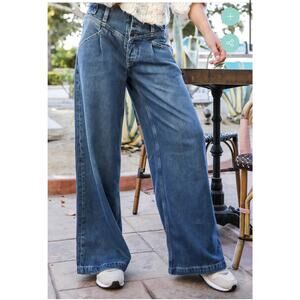 New Free People We the Free Super Sweeper Full Wide Leg Denim Jeans, size S but these run big - listing as a M - see measurements! Super soft Cotton lyocell blend with high waist, Y Yoke and button fly