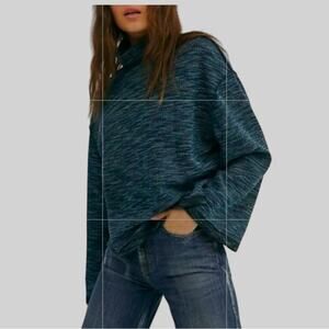 Free People We the Free Sweater Womens Size M Blue Oversized Turtleneck Boxy