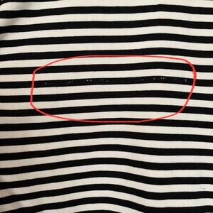 Condition: this shirt is new without tags, but has an imperfection on the back where there are some lighter threads in one of the black stripes, see pictures