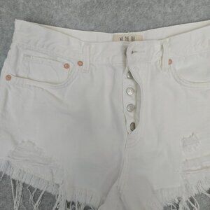 Free People We the Free Sz 30 White Denim Frayed Hem Distressed Festival Shorts