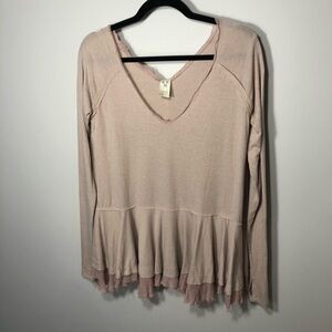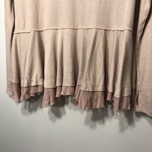 A contrast knit layer at the hem adds a vintage character to this ribbed, long sleeve tee.