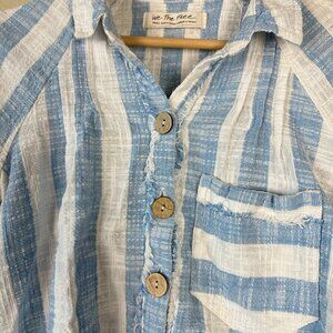 Free People We the Free Women's Top Cropped Stripes Blue White Small