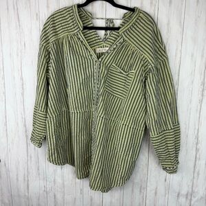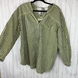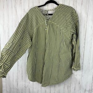 Free People We the Free oversized striped button down. Size XS. Gently preloved in great condition. Lime, blue, gray color. Reminds me of magnolia pearls and spell and the gypsy.