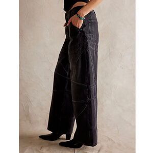 Free People We the Free Unknown Reasons Mid Rise Moto Straight Jeans Nightfall
