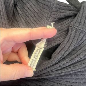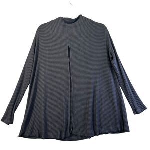 Ribbed thermal sweater with mock neck and open back feature. Really comfortable and great for transitional weather.