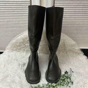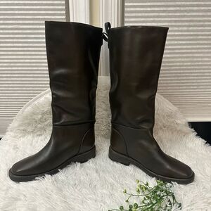 Features: Tall design, pull-on style, worn leather fabrication, square toe, slight heel, pull tab