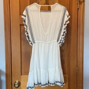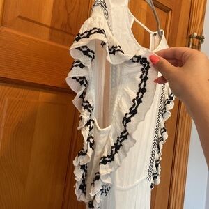 Free People Weekend Brunch Embroidered Ruffle Sleeveless Mini Dress in Ivory with Open Back