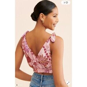 Free People Weekend In Montauk Statin Floral Crop Top SMALL NWOT $58