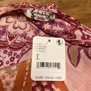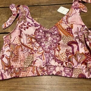 Free People Intimately tank top. Size large. Weekend In Montauk style. Smocked crop top, tie straps. Floral Pink pattern. V neck. NWT.