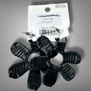 Free People Wendy Woven Flower Hoops Black NWT Bohemian Funky Raffia Earrings