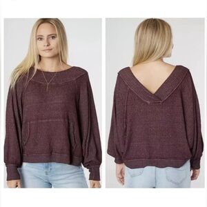 Free People Westend Thermal Top Small Green Waffle Oversized Slouchy Shirt