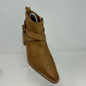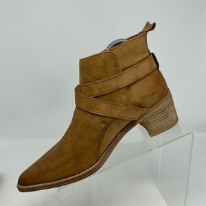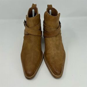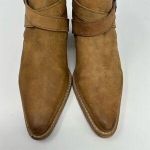 Free People Western Ankle Booties Tan Light Brown Leather Size 37.5 (US 7.5) Buckle Pointed Toe