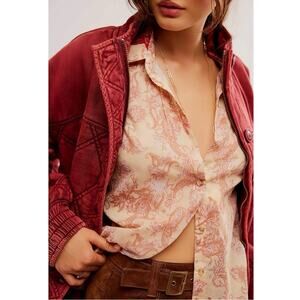 Free People Western Bohemian Dainty Rose Bud Button Down Blouse Shirt Large