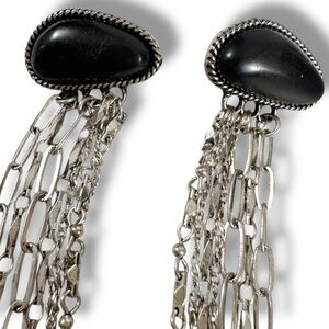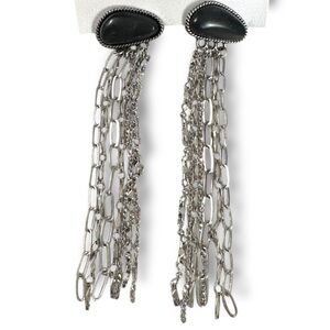 Free People Western Bohemian Wild Honey Dangle Earrings in Black Silver Fringe