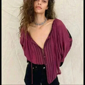 Stun in this so effortless and romantic blouse featured in a button-front silhouette with exaggerated sleeves and embroidery throughout for added dimension.