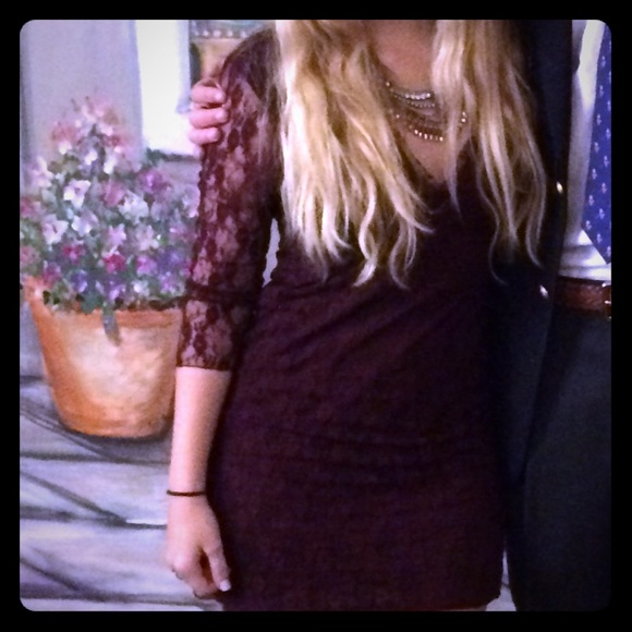 Floral lace V-neck slip with sheer sleeves and raw trim detailing. Wore this dress once to a party. Love that you can dress it up or down to suit the occasion.