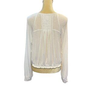 Free People White Balloon Sleeve Poet Semi-Sheer Top Blouse Size Small