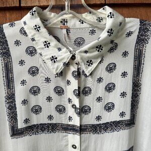 Free People White Bandana Print Long Sleeve Button Up Shirt Relaxed Fit Large
