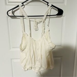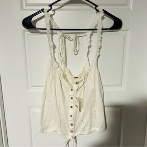 This stylish white camisole from Free People features a chic buttoned front and a trendy tie detail, perfect for layering or wearing on its own. The cropped design adds a modern touch, making it an ideal choice for warm weather outings. Its lightweight fabric ensures comfort and ease of movement.