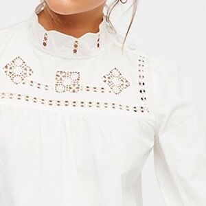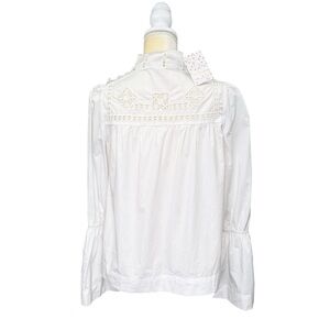 Free People White Cotton Blouse Size XS Bell Sleeves Crochet Eyelet Lace New NWT