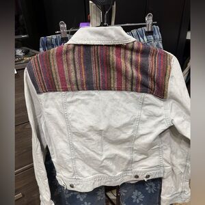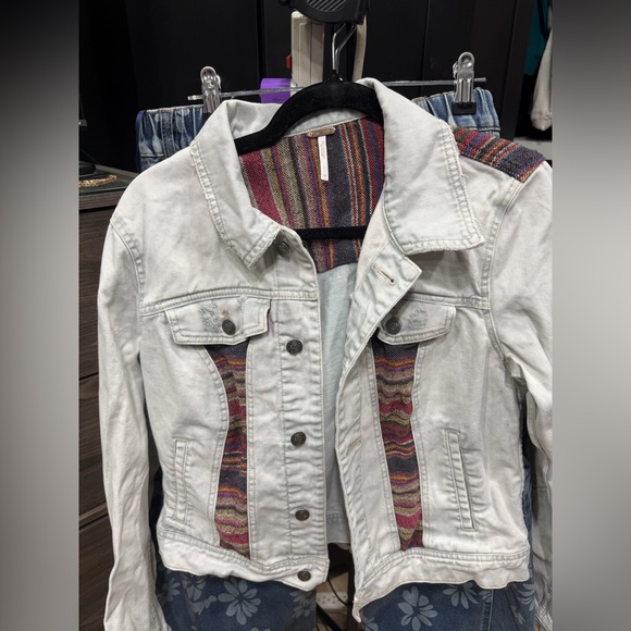 Free People White Denim Jacket with Multicolor Accents