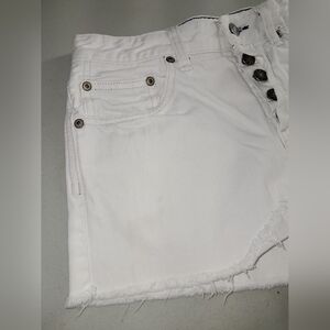Stylish white denim shorts with button fly details. Perfect for casual wear.