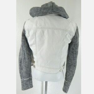 Item: Women's White Gray Hooded Sweatshirt Denim Combo Jacket Distressed