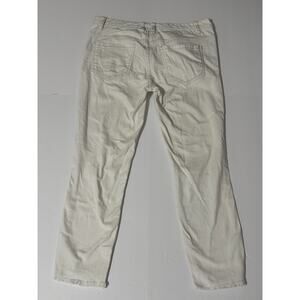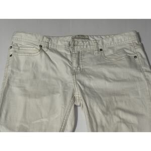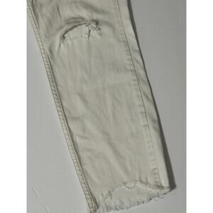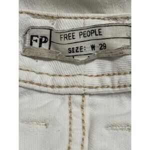 This sale is for one (1) pair of women's Free People distressed skinny jeans, size 29. The jeans are white in color with tan stitching.