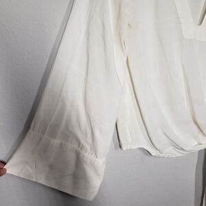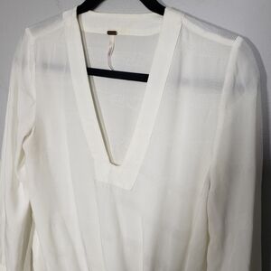 Free People White Faux Wrap Tie-front Top Wide Sleeve Rayon Size XS