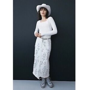 Free People White Floral Skirt