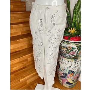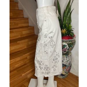 Elegant white skirt with delicate floral patterns. Perfect for casual or dressy occasions.