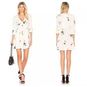 Free People White Floral Time On My Side Wrap Dress Size Small Ivory Yellow