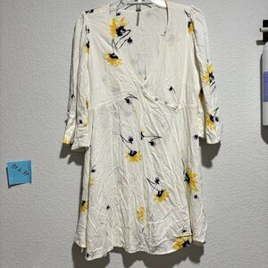 Free People White Floral Time On My Side Wrap Dress Size Small Ivory Yellow