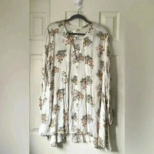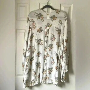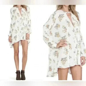 Free People White Gardenia Retro Swing Tunic Mini Dress Floral Long Sleeve M