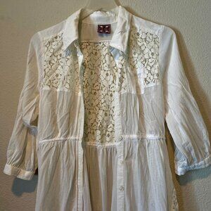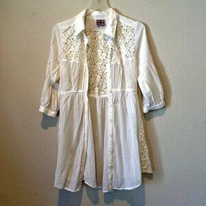 Free People White Gauzy Button-Up Tunic Cover Up Size 10 Boho Summer